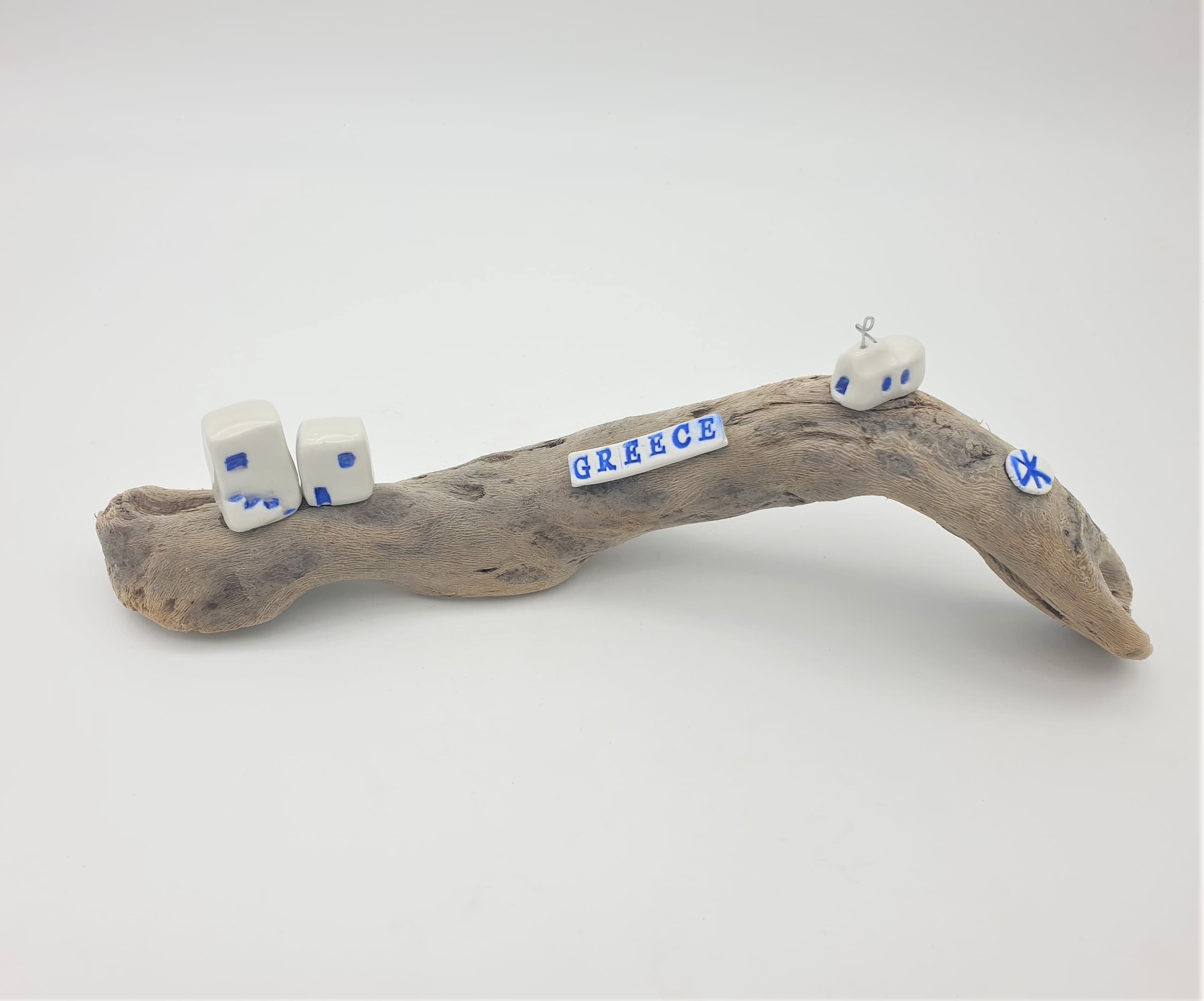 Κατασκευή πάνω σε ξύλο με κεραμικά στοιχεία φτιαγμένα από πορσελάνη ψημένα στους 1240 βαθμούς κελσίου. Tα αντικείμενα είναι χειροποίητα και μπορεί να υπάρξει μικρή παραλλαγή σε σχέση με τις εικόνες των προϊόντων.