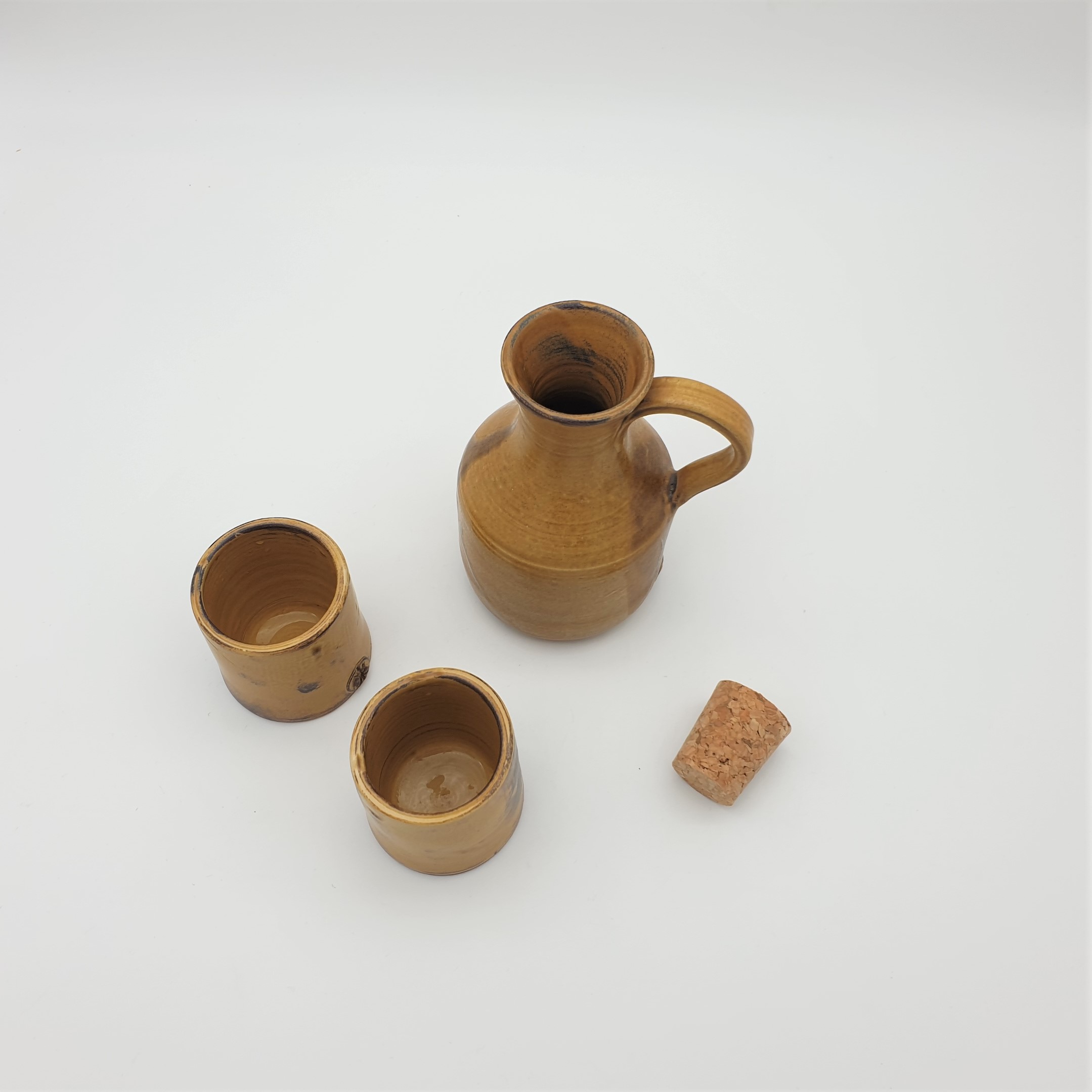 Χειροποίητο κεραμικό σετ για κρασί και ρακή Ανοιχτό καφέ.
